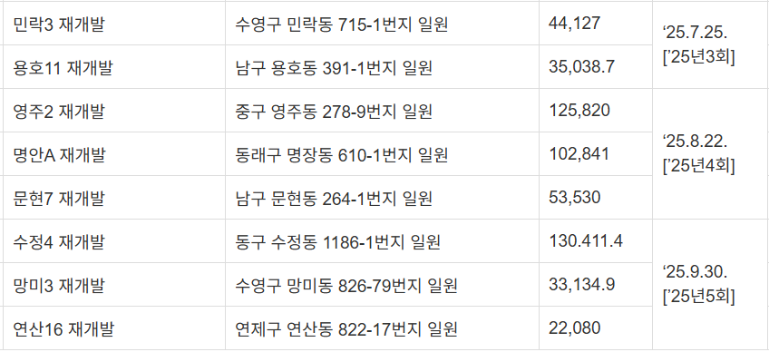 | 95 | 광안7 재개발 | 수영구 광안동 177-5번지 일원 | 87,220 | ‘25.2.26. [’25년1회] |